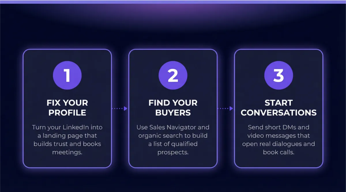 A free 3-day email course to stop chasing prospects & start booking qualified meetings on LinkedIn.